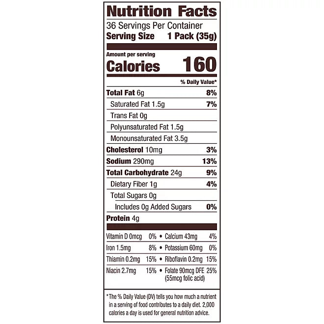 - 36 single-serve packs in Cheddar flavor (1.25 oz. each)